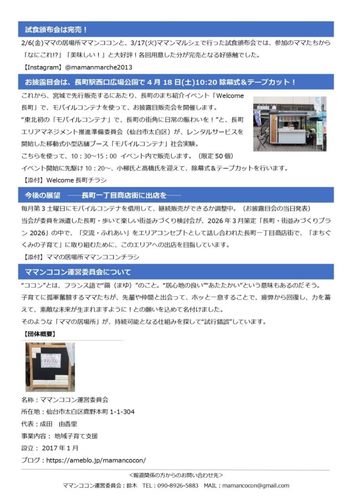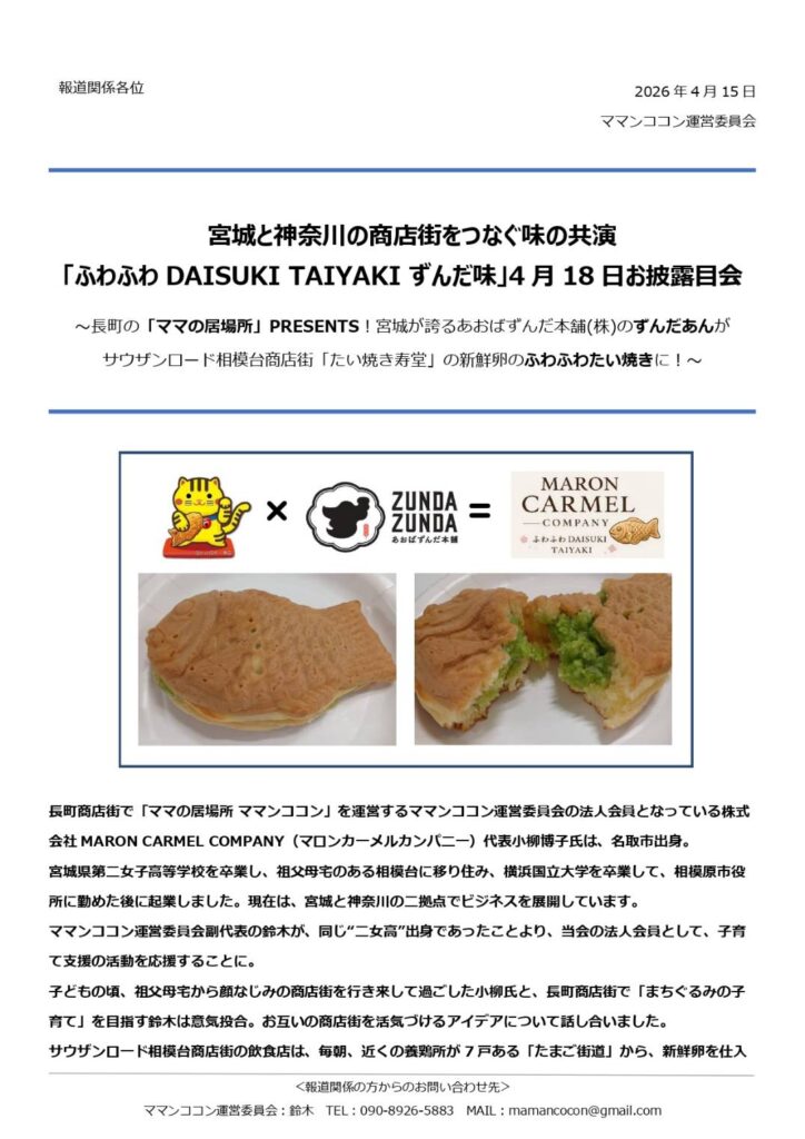 長町商店街で「ママの居場所 ママンココン」を運営するママンココン運営委員会と共同で開発した、