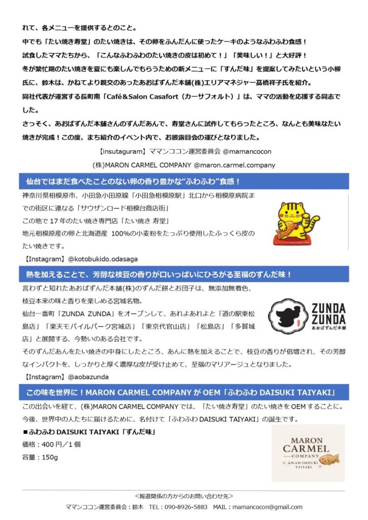 「ふわふわ DAISUKI TAIYAKI ずんだ味」のお披露目会を行いました!